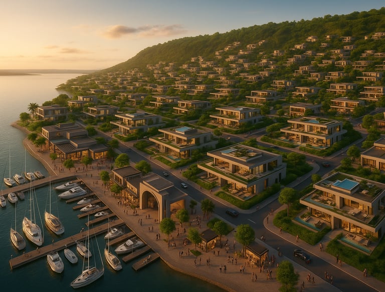 Where water is sacred. Located along the Volta Lake axis, Harmony Bay is engineered for hydro-based wellness, climate cooling and regenerative living infrastructure — ideal for health-centered residences, retreats and hydro-powered innovation estates.